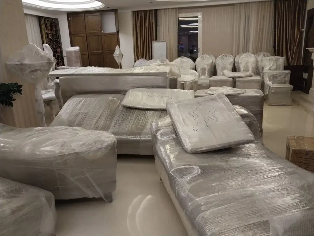 مبلمان، سرویس خواب، میزها، کمدها و سایر وسایل بزرگ با استفاده از پتو، فوم ضخیم و سلفون صنعتی بهصورت کامل پوشانده میشوند. گوشهها، پایهها و نقاط حساس این وسایل با دقت ویژه محافظت شده و در صورت نیاز، قطعات قابلجداسازی بهصورت اصولی باز و بستهبندی میگردند تا حمل آنها آسانتر و ایمنتر انجام شود.
